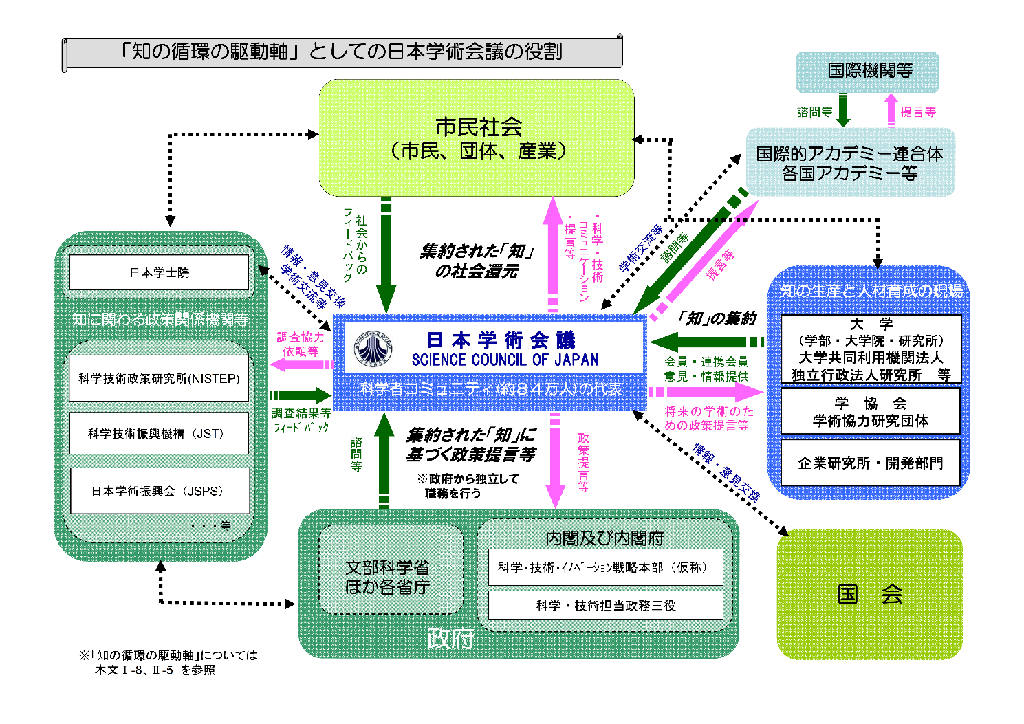 図 1「知の循環の駆動軸」としての日本学術会議の役割